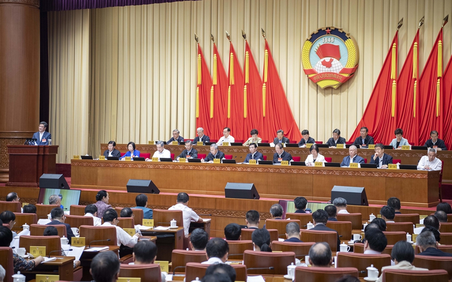 政協(xié)第十四屆全國(guó)委員會(huì)常務(wù)委員會(huì)第七次會(huì)議5日下午舉行全體會(huì)議,14位政協(xié)常委圍繞“構(gòu)建高水平社會(huì)主義市場(chǎng)經(jīng)濟(jì)體制”作大會(huì)發(fā)言。中共中央政治局常委、全國(guó)政協(xié)主席王滬寧出席。